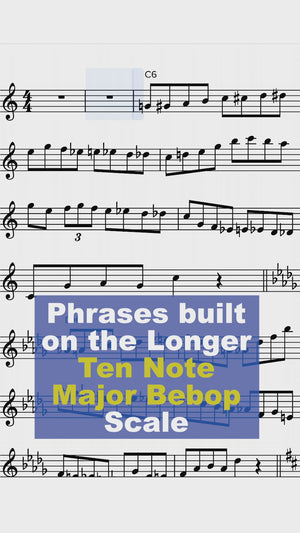 As well as these fundamental Bebop scales there are longer,more sophisticated  ten notes versions included, not to mention the  minor 7b5, dominant b9 b13  and triplet Bebop scales + Bebop scales "mapped" over major and minor ii-7 V7 I progressions in 12 keys