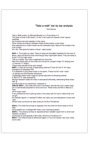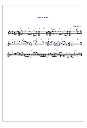 The captivating, muscular "Take a Walk" melody offers an exceptional learning opportunity, bearing the unmistakable imprint of Michael Brecker's genius - a fusion of his profound intellect, coherent musicianship, and the heartfelt essence of the Blues.
