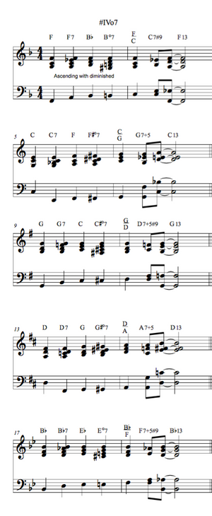 - Specially written practice lines designed to aid the assimilation of the progression in various keys that will help develop harmonic understanding and will challenge technically!