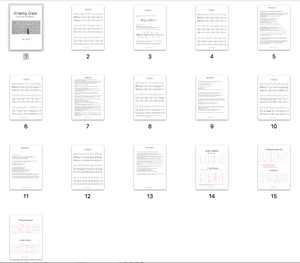 Each version of Amazing Grace builds upon the previous one in a logical way and comes with analysis notes, roman chord symbols + Piano Notation.