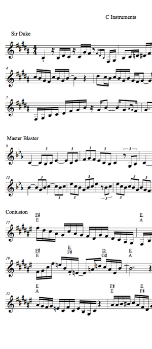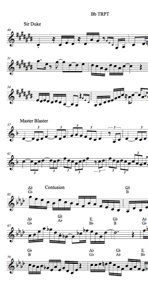 3 Killer Lines - featuring SIR DUKE, MASTER BLASTER, CONTUSION + You and I lead sheet.