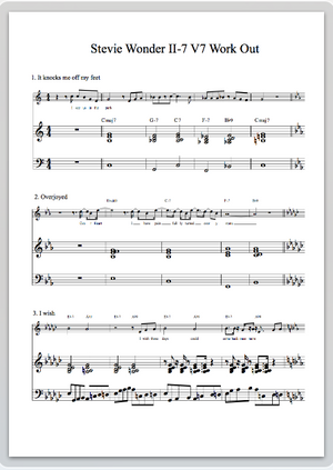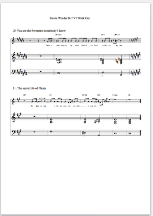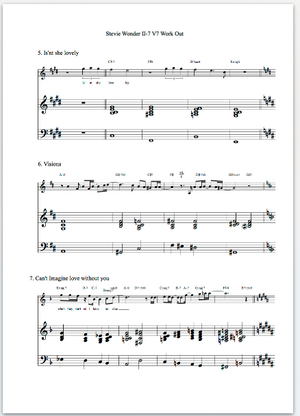 This Pdf features 10 Stevie Wonder Classics that employ the vital to know Jazz II-7 V7 progression. The PDF includes the sheet music of the 10 example extracts in the video that feature II-7 V7. The following tunes are featured: