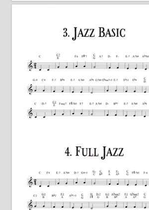 3) Jazz Basic version - using secondary dominants, IV minor, sub V and II-7 V 7 chords.