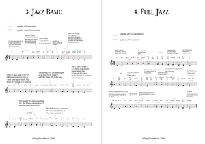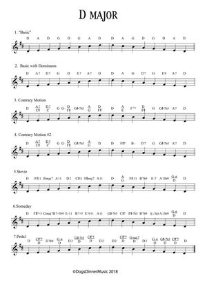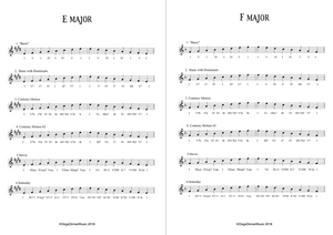 4) The major scale in 12 keys with the Roman numeral analysis only - so you can practice translating the roman numeral analysis symbols in to each key- a guaranteed way to stimulate brain cells! This can be challenging!