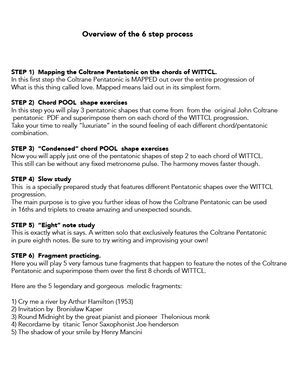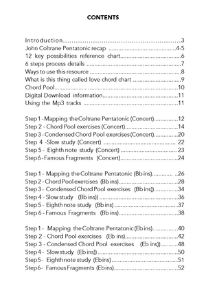 The unusual musical shapes that the "Coltrane Pentatonic" produce provide a wealth of challenging material for the player looking to add new sophisticated sounds to their improvisational tool box.