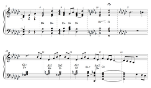 3) The melody with Jazz symbol chords and  exact Piano chord voicings- uncluttered with the analysis notes removed.