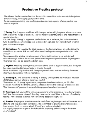 4) Productive Practice Protocol tips:The idea of the Productive Practice Protocol is to combine various musical disciplines simultaneously, leveraging your practice time.